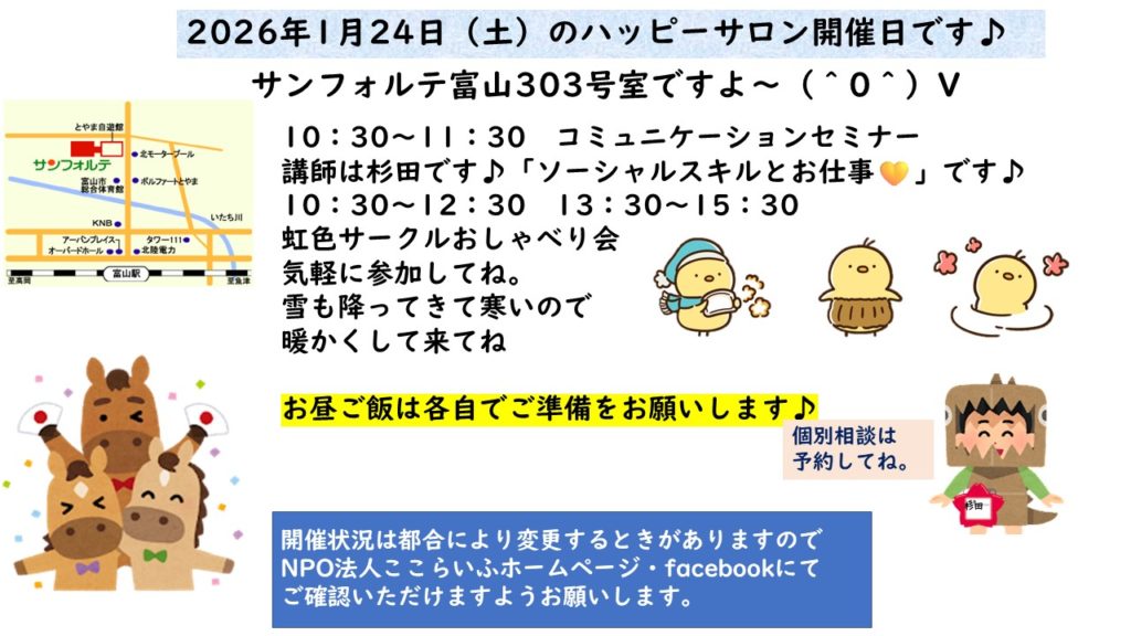 令和8年1月24日土曜日サンフォルテ富山でハッピーサロン開催します