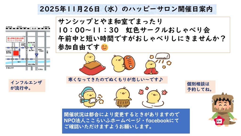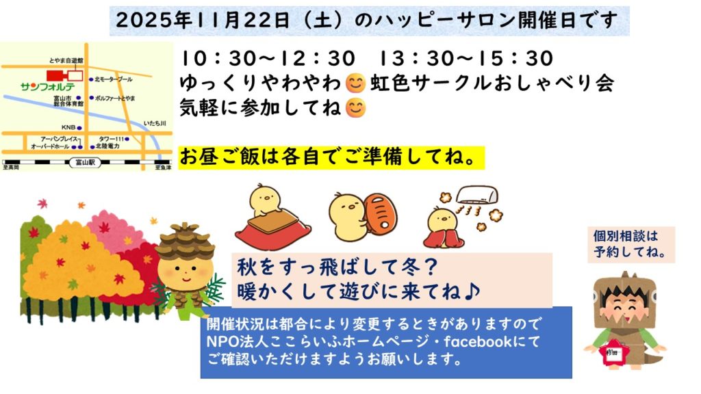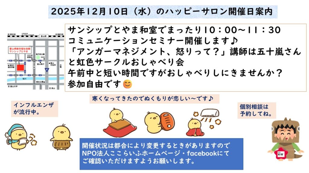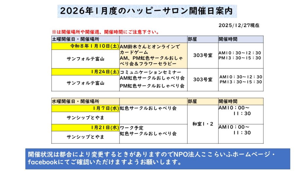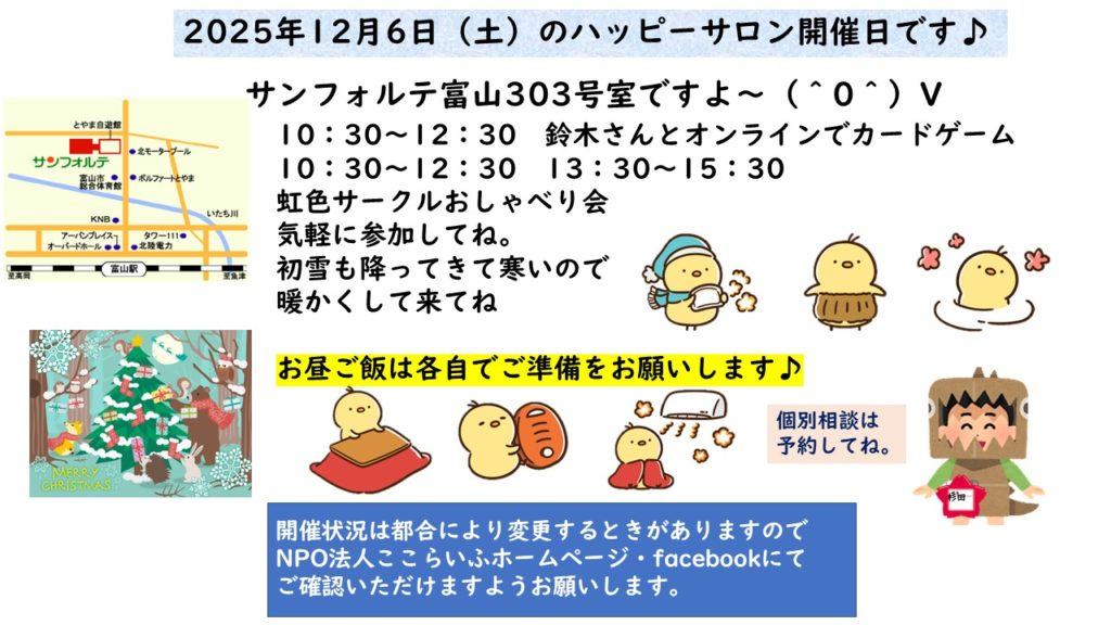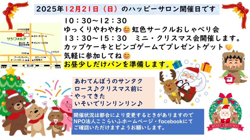今年も沢山の方が参加いただきました。来年も笑顔いっぱいのハッピーサロンになればいいなぁ♪気軽に参加してね♪