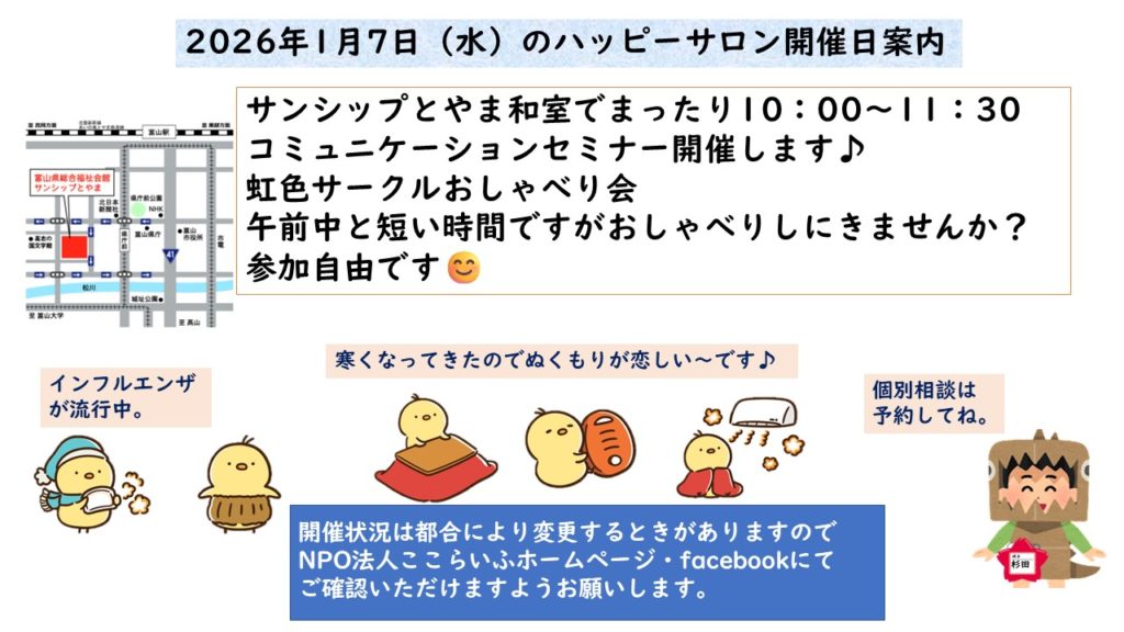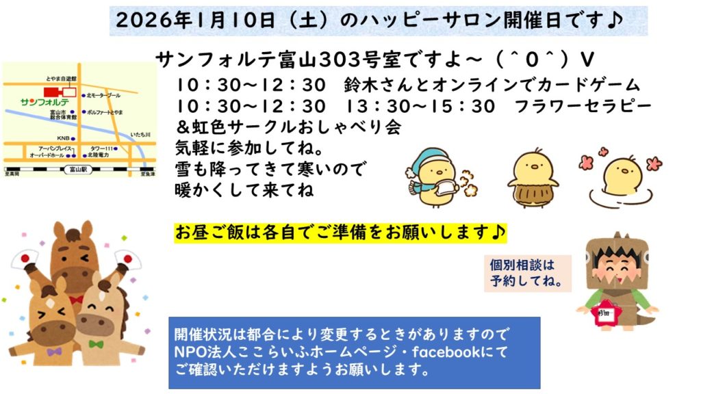 1月10日(土)ハッピーサロンzoomリンクミーティングに参加するhttps://us02web.zoom.us/j/85897564174...ミーティング ID: 858 9756 4174パスコード: 699063