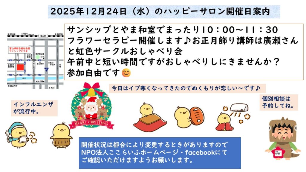 今年も沢山の方が参加いただきました。来年も笑顔いっぱいのハッピーサロンになればいいなぁ♪気軽に参加してね♪