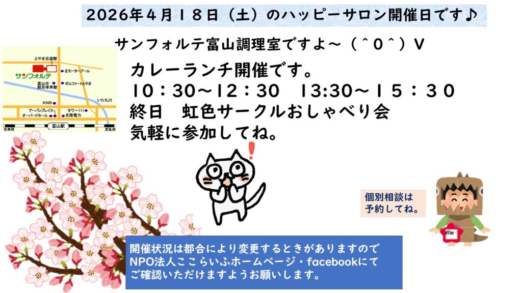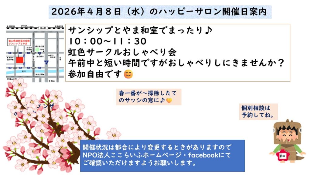 4月8日水曜日サンシップとやまでハッピーサロン開催します♪