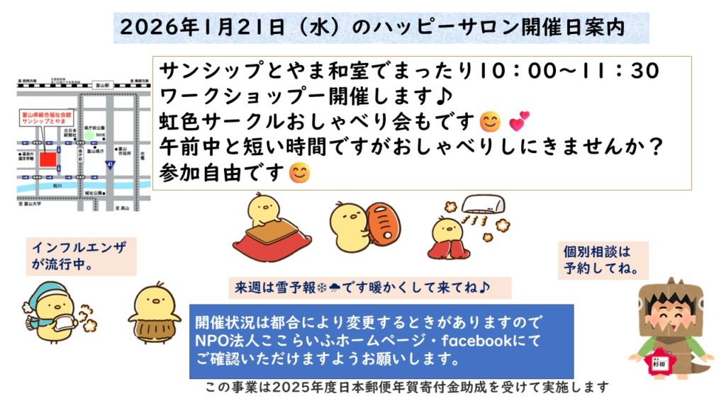 ハッピーサロン時刻: 2026年2月7日 10:30 大阪、札幌、東京Zoom ミーティングに参加するhttps://us02web.zoom.us/j/86088558702...ミーティング ID: 860 8855 8702パスコード: 064898---